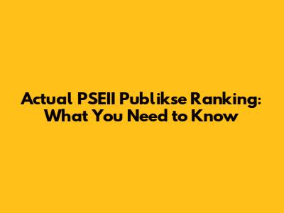 Actual PSEII Publikse Ranking: What You Need To Know