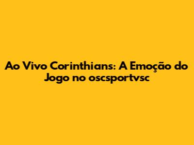 Ao Vivo Corinthians: A Emoção Do Jogo No Oscsportvsc