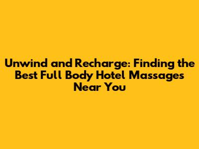 Hey everyone! Ever felt like you just need a serious escape? Maybe you're traveling for work, on a much-needed vacation, or just looking to treat yourself to some serious pampering without leaving the comfort of your hotel. Well, you're in luck, because full body hotel massages are a fantastic way to do just that! Forget trekking out to a spa; imagine sinking into a plush robe and letting a skilled therapist work out all those kinks and stresses right in your own temporary home away from home. It's the ultimate convenience, blending luxury with relaxation. We're going to dive deep into why these in-room massages are a game-changer and how you can find the absolute best ones available, ensuring your stay is as rejuvenating as possible. Get ready to discover the secrets to blissful relaxation without even having to step outside!