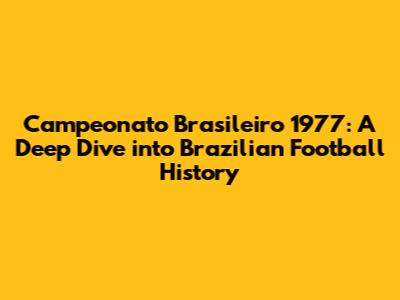 Campeonato Brasileiro 1977: A Deep Dive Into Brazilian Football History