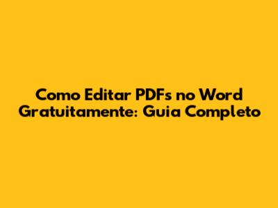Como Editar PDFs No Word Gratuitamente: Guia Completo