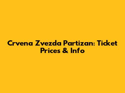 Crvena Zvezda Vs Partizan: Ticket Prices & Info