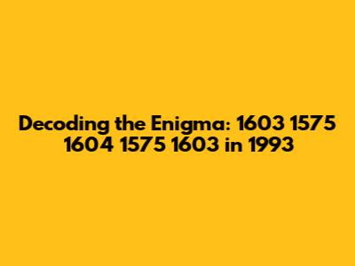 Decoding The Enigma: 1603 1575 1604 1575 1603 In 1993