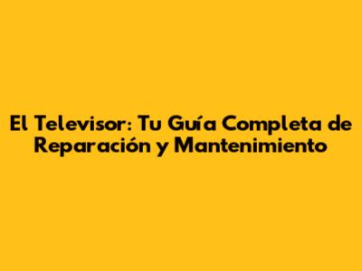 El Televisor: Tu Guía Completa De Reparación Y Mantenimiento