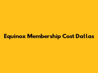 Equinox Dallas Membership Costs: A Detailed Breakdown