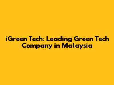 IGreen Tech: Leading Green Tech Company In Malaysia