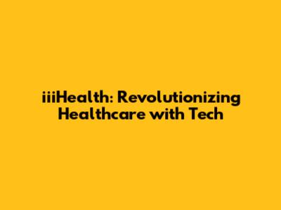 IiiHealth: Revolutionizing Healthcare With Tech