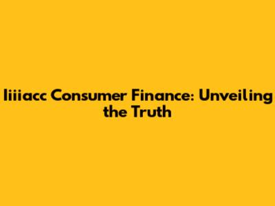 Iiiiacc Consumer Finance: Is It Right For You?