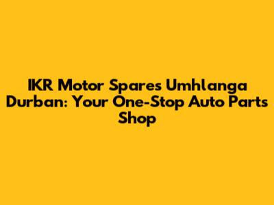 IKR Motor Spares In Umhlanga, Durban: Your Auto Parts Guide