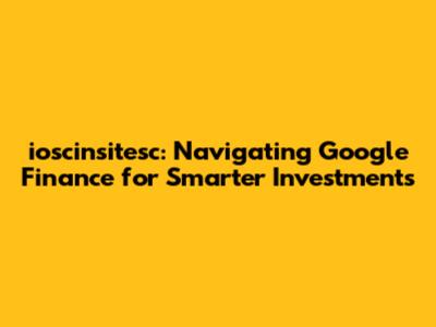 Hey everyone! Let's dive into the world of ioscinsitesc and how it can help you navigate the often-complex landscape of Google Finance for smarter investment decisions. Sound good? Awesome! We'll break down everything from the basics of Google Finance to how you can use ioscinsitesc tools to analyze the markets, track your portfolio, and make informed financial choices. Whether you're a seasoned investor or just starting out, this guide is designed to provide you with valuable insights and actionable strategies to boost your financial savvy. So, grab a coffee (or your beverage of choice), get comfy, and let's unlock the potential of ioscinsitesc and Google Finance together.