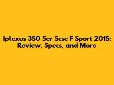 Iplexus 350 Ser Scse F Sport 2015: Review, Specs, And More