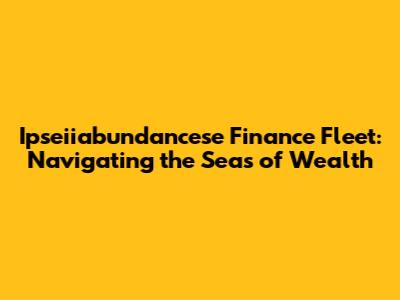 Ipseiiabundancese Finance Fleet: Navigating The Seas Of Wealth