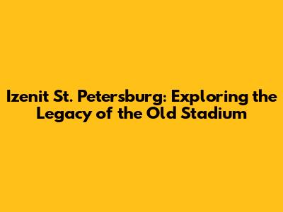 Izenit St. Petersburg: Exploring The Legacy Of The Old Stadium