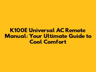 K100E Remote: Your Ultimate Guide