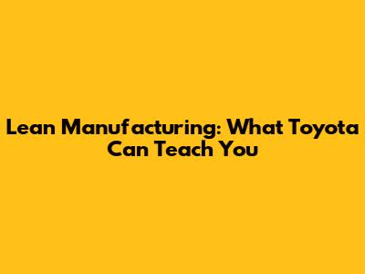 Lean Manufacturing: What Toyota Can Teach You