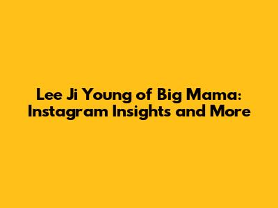 Lee Ji Young Of Big Mama: Instagram Insights And More