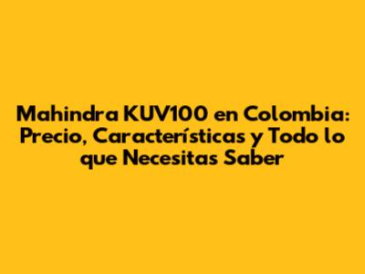 ¡Hola, entusiastas de los carros! Si están buscando un vehículo compacto, económico y con un toque de aventura, seguramente han escuchado sobre el Mahindra KUV100. Y si están en Colombia, probablemente se pregunten: ¿cuánto cuesta realmente? ¡Pues, aquí les tenemos toda la información! En este artículo, vamos a desglosar el precio del Mahindra KUV100 en Colombia, sus características, versiones disponibles y todo lo que necesitan saber para tomar la mejor decisión de compra. Prepárense para un recorrido completo por este pequeño gigante.