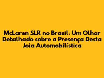 Ah, a McLaren SLR! Só o nome já evoca imagens de velocidade, luxo e exclusividade, não é mesmo, galera? Se você, assim como eu, é apaixonado por carros, com certeza já se pegou sonhando em acelerar uma dessas máquinas. Mas, a grande questão que paira no ar é: quantas McLaren SLR existem no Brasil? E onde será que elas estão? Bora desvendar esse mistério juntos!