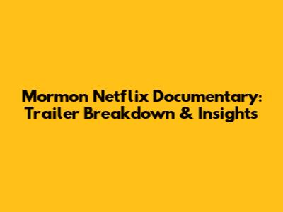 Mormon Netflix Documentary: Trailer Breakdown & Insights