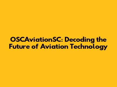 OSCAviationSC: Decoding The Future Of Aviation Technology