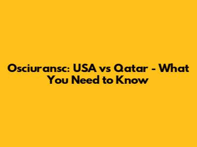 Osciuransc: USA Vs Qatar - What You Need To Know
