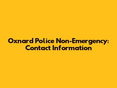 Oxnard Police Non-Emergency: Contact Information