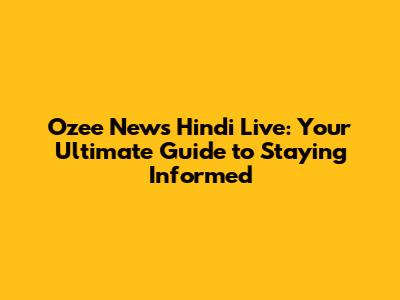 Exploring the Features of Ozee News Hindi Live