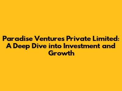Hey everyone, let's dive into the world of Paradise Ventures Private Limited! This isn't just a name; it's a gateway to understanding investment strategies, market dynamics, and the pursuit of growth. So, what exactly is Paradise Ventures Private Limited, and why should you, as an investor or someone interested in business, care? We'll break it down, covering everything from its core operations to its strategies for success, all while keeping things casual and easy to understand. Ready, guys? Let's get started!