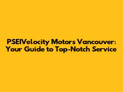 PSEIVelocity Motors Vancouver: Your Guide To Top-Notch Service