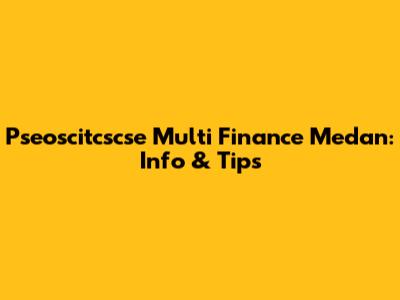 Pseoscitcscse Multi Finance Medan: Info & Tips