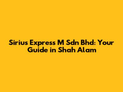 Sirius Express M Sdn Bhd: Your Guide In Shah Alam