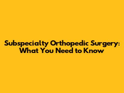 Subspecialty Orthopedic Surgery: What You Need To Know