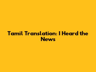 Tamil Translation: 'I Heard The News'