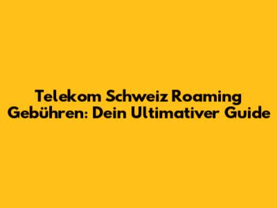 Telekom Schweiz Roaming Gebühren: Dein Ultimativer Guide