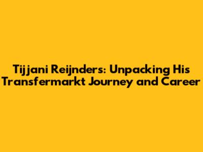 Hey everyone! Let's dive deep into the world of Tijjani Reijnders and his journey, especially focusing on his career and the insights provided by Transfermarkt. For those who might not know, Transfermarkt is like the go-to place for all things football stats, player values, and transfer news. We'll be exploring Reijnders' career path, how his value has evolved, and the impact he's making in the football world. It's going to be a fun ride, so buckle up!