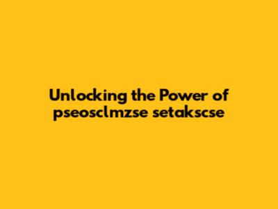 Unlocking The Power Of Pseosclmzse Setakscse