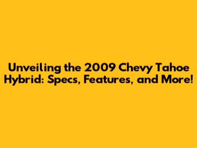 Unveiling The 2009 Chevy Tahoe Hybrid: Specs, Features, And More!