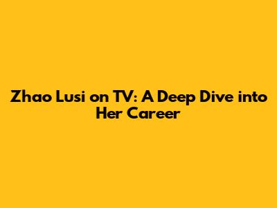 Zhao Lusi On TV: A Deep Dive Into Her Career